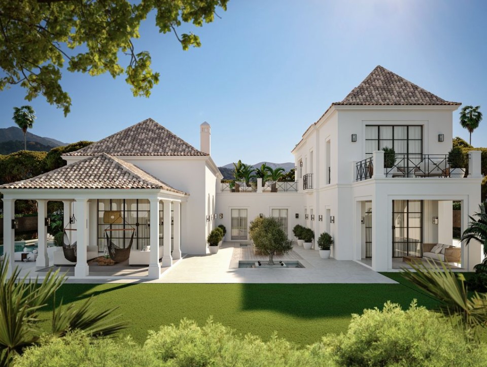 Located in the prestigious Nueva Andalucía area of Marbella, this elegant residence combines timeless design with a relaxed Mediterranean lifestyle. Inspired by classic French provincial architecture, it sits in the heart of the Golf Valley—just minutes from celebrated courses such as Los Naranjos.