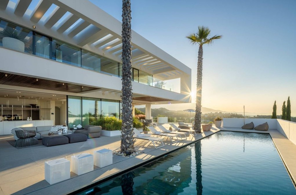 Fascinating modern villa with a prime location in Nueva Andalucía. Designed by a renowned architect, this villa features amazing architecture that captivates with its contemporary elegance. The façade is a masterpiece, drawing attention with its striking design, while the property's entrance features a stunning water feature that adds to its appeal. Set on a generous plot, the property is surrounded by meticulously landscaped gardens, providing beauty and privacy from neighbours.