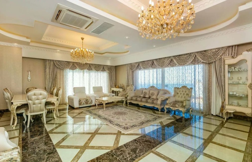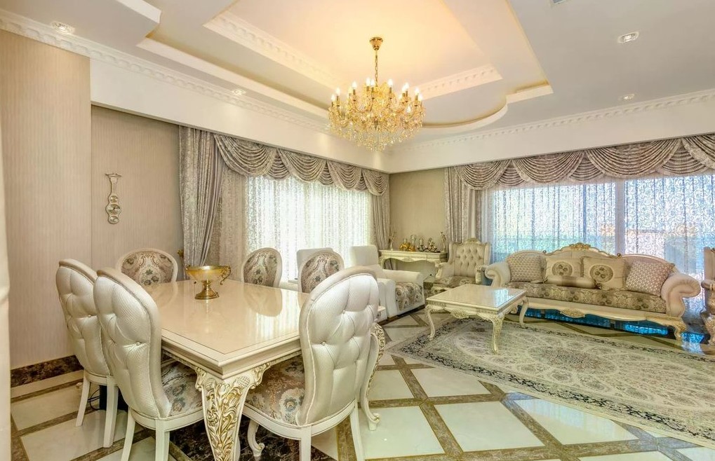 A 3+1 duplex apartment with an area of 354 m², located in one of the most elite complexes, Azura Park, in the Mahmutlar area of Alanya. The apartment has an excellent infrastructure with 3 bedrooms, a large living room, a spacious kitchen, 3 bathrooms, a sauna, 3 balconies, and a large terrace. Located on the 13th floor of a 14-story building with panoramic windows offering stunning views of the mountains and the sea.